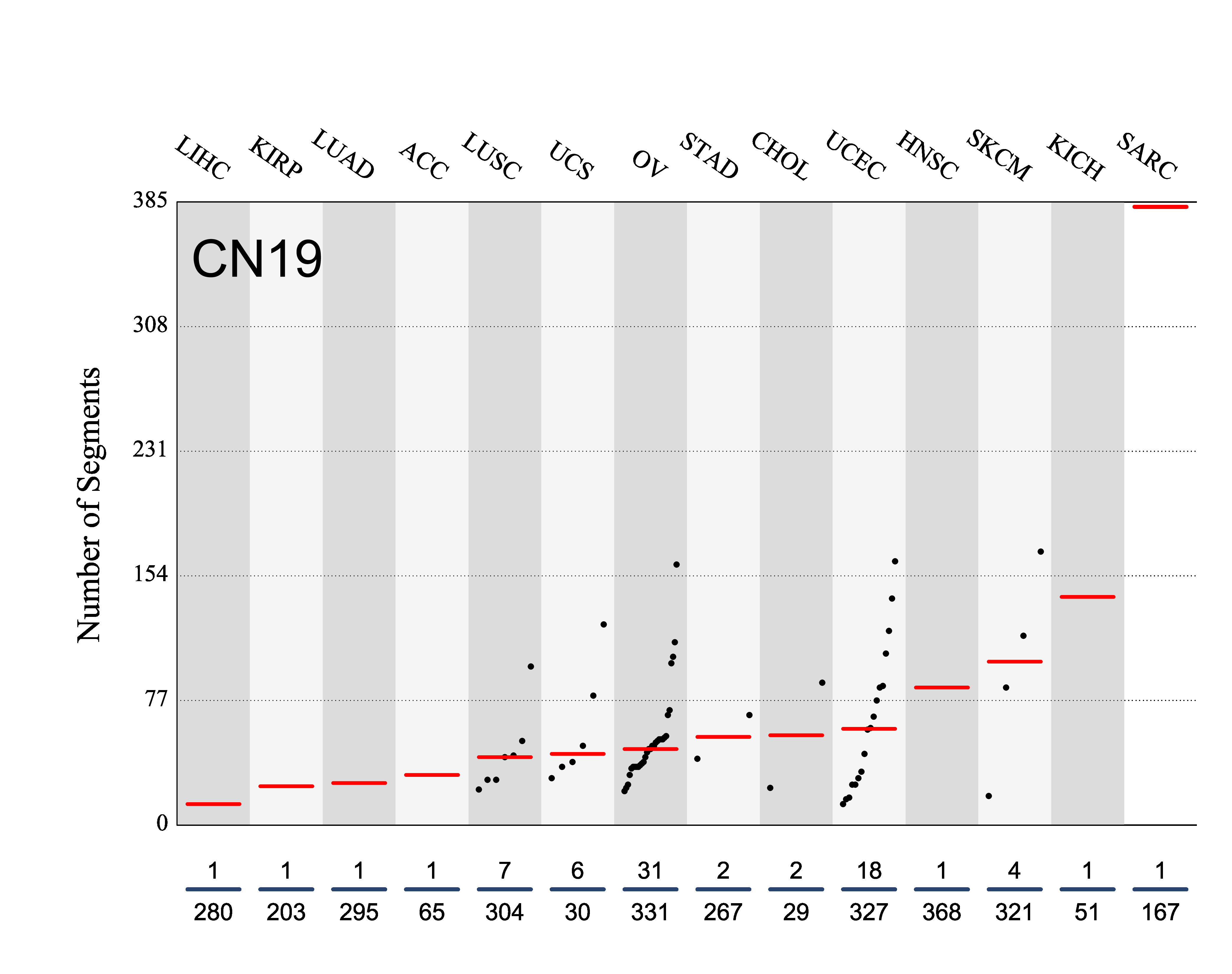In addition, CN19 is associated with poor prognosis in a pan-cancer multivariate association, and with patients with black ancestry as compared to those with white ancestry.