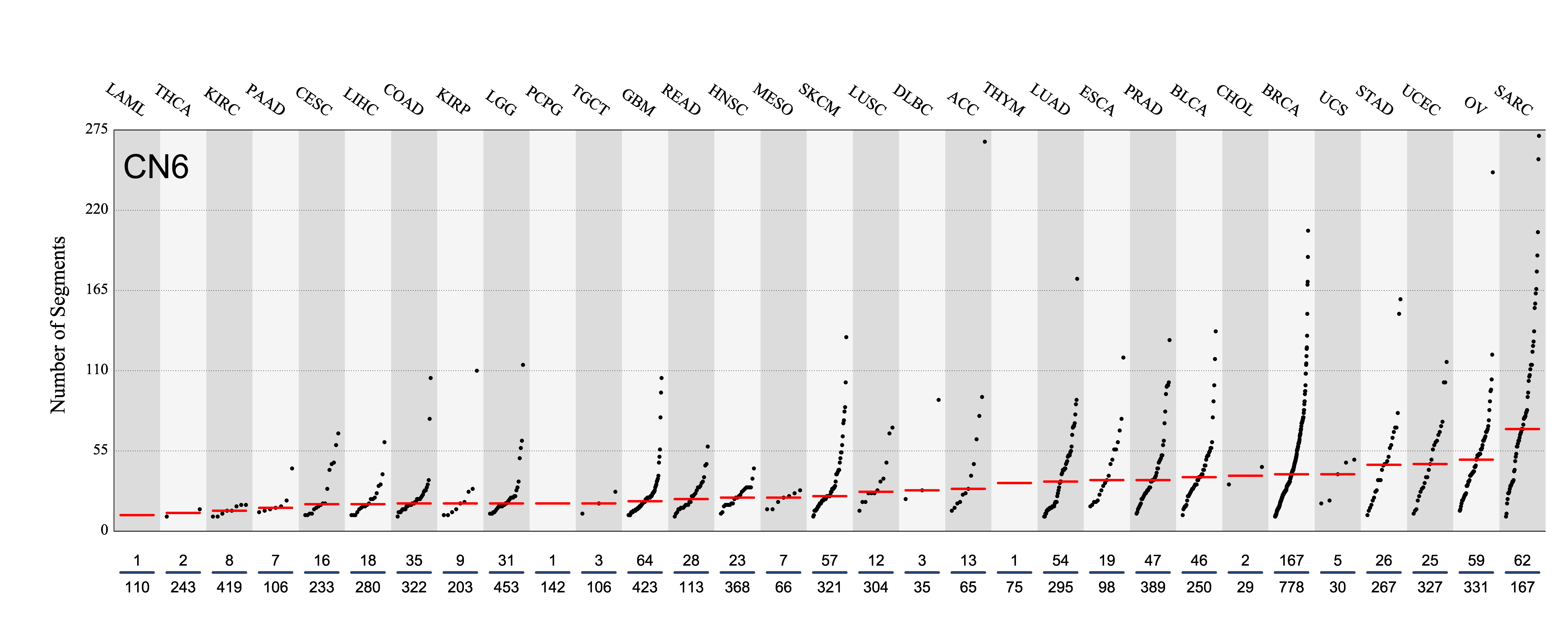 In addition, CN6 associates strongly with the circular amplicon class (ECDNA), and less strongly with the linear and heavily rearranged amplicon classes (see Kim et al., 2020). CN6 is also associated with chromothripsis, deletion and tyfonas rearrangement classes (see Hadi et al., 2020).