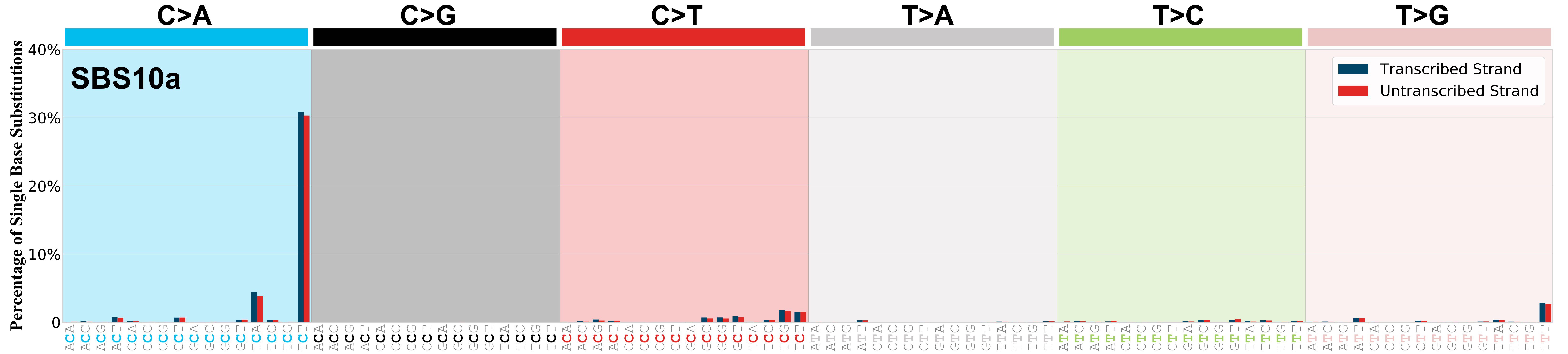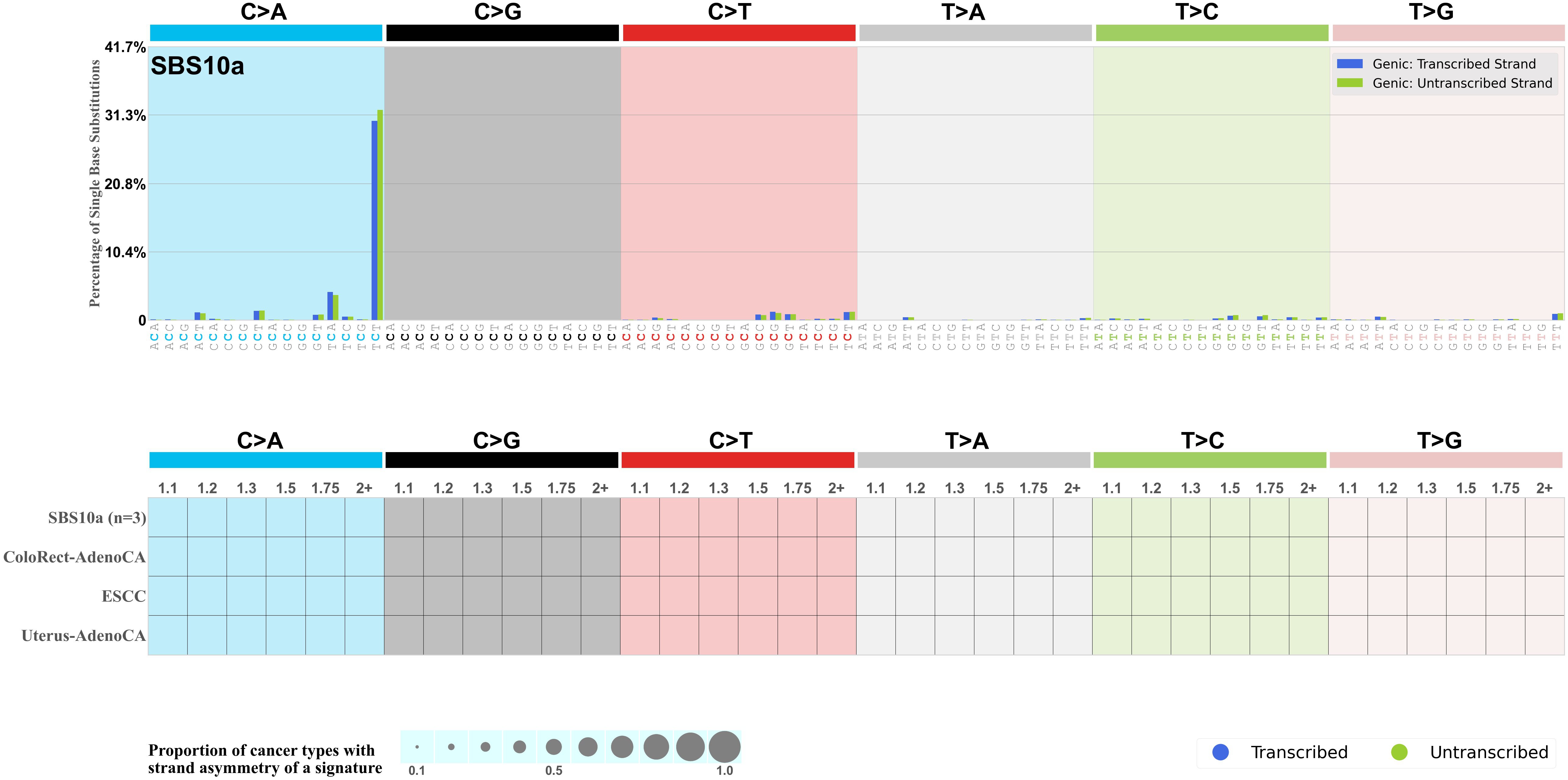 Each mutation attributed to the mutational signature is annotated as either on the transcribed strand, untranscribed strand, or non-transcribed strand.