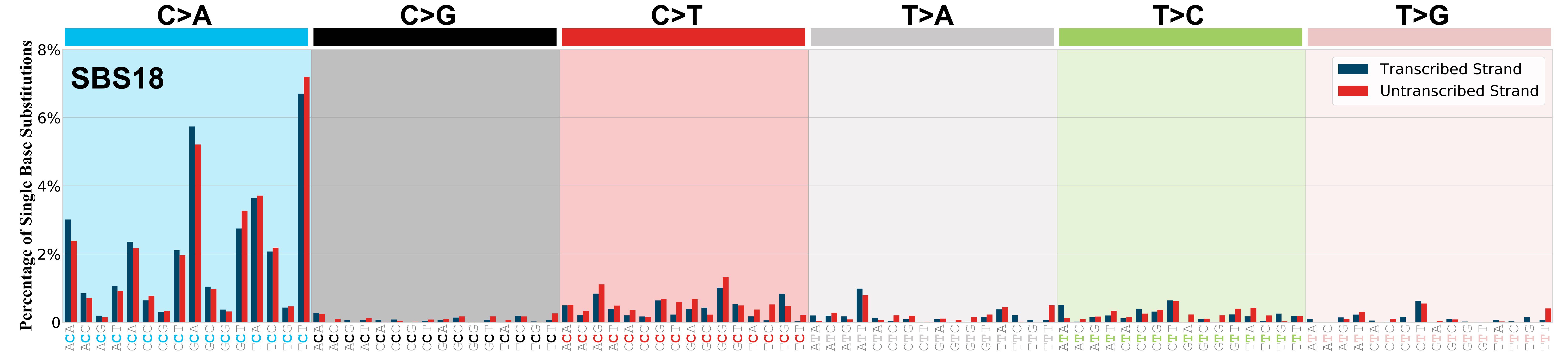 Mutational signatures exhibit asymmetric number of mutations due to either one of the DNA strands being preferentially repaired or one of the DNA strands having a higher propensity for being damaged. One common example of strand asymmetry is transcription-strand asymmetry which can be due to the activity of transcription-coupled nucleotide excision repair (TC-NER) or transcription-coupled damage amongst others.