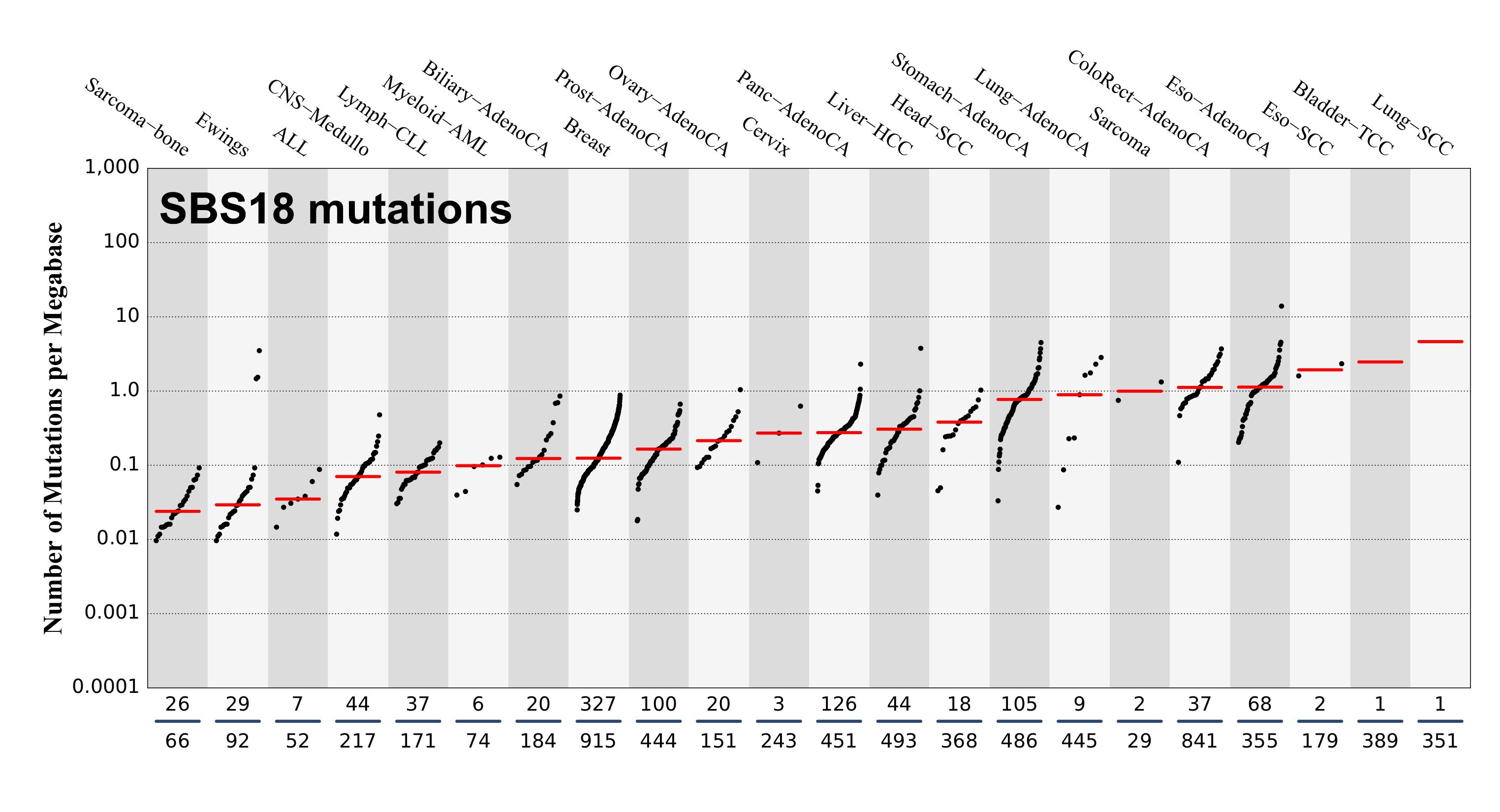 SBS18 · GRCh37 · COSMIC v103