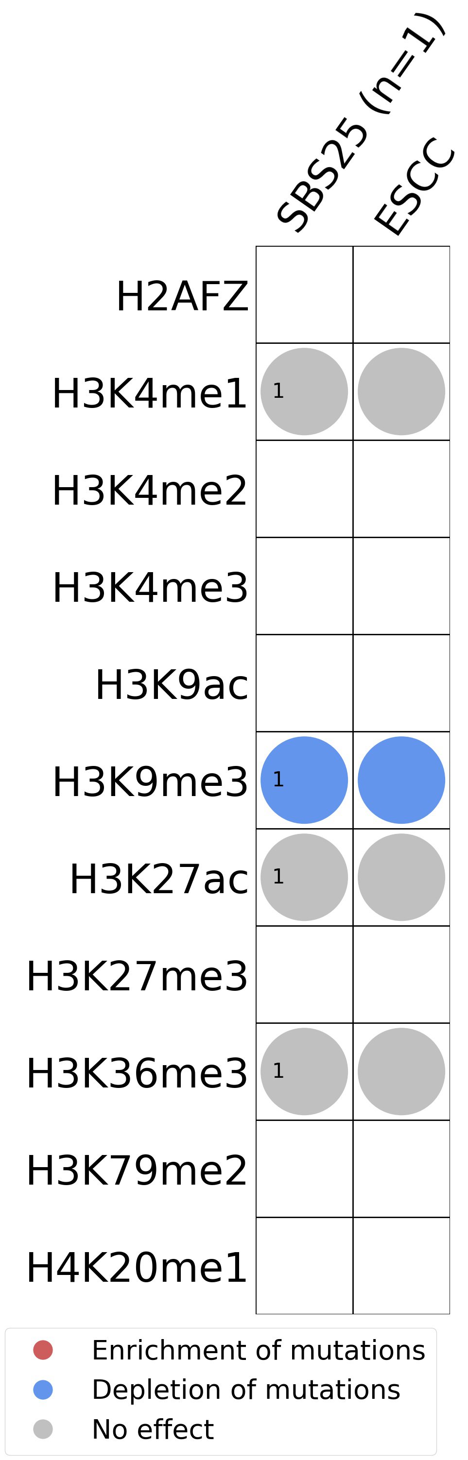 (i) H2AFZ, a replication-independent member of the histone H2A family that renders chromatin accessible at enhancers and promoters and regulates transcriptional activation and repression; (ii) H3K4me1, histone mark often associated with enhancer activity; (iii) H3K4me2, a histone post-translational modification enriched in cis-regulatory regions, including both enhancers and promoters; (iv) H3K4me3, post-translational modification enriched in active promoters near transcription start sites; (v) H3K9ac, associated with active gene promoters and active transcription; (vi) H3K9me3, typical mark of constitutive heterochromatin; (vii) H3K27ac, histone modification generally contained at nucleosomes flanking enhancers; (viii) H3K27me3, repressive, associated with silent genes; (ix) H3K36me3, associated with transcribed regions and playing a role in regulating DNA damage repair; (x) H3K79me2, detected in the transcribed regions of active genes; and (xi) H4K20me1, found in gene promoters and associated with gene transcriptional elongation and transcription activation.