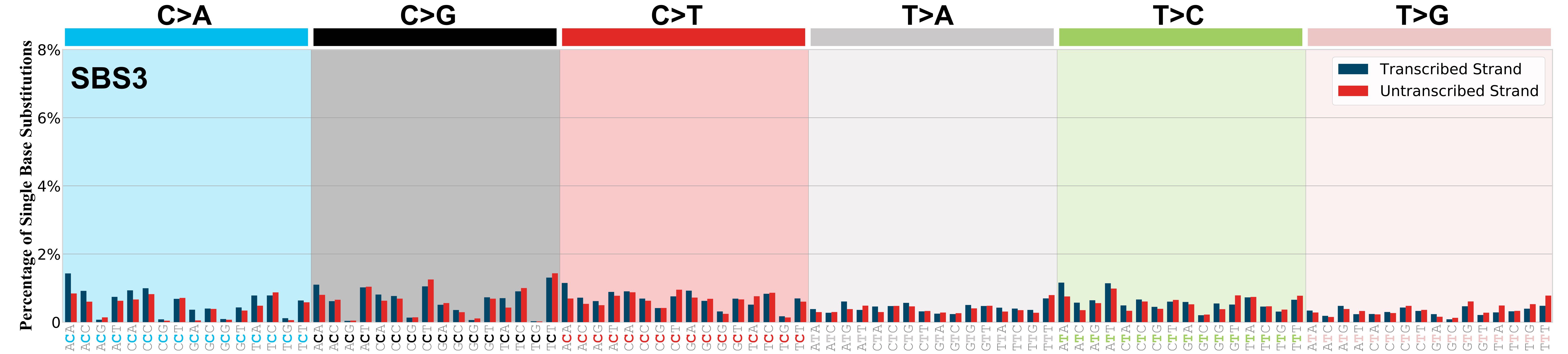 Each mutation attributed to the mutational signature is annotated as either on the transcribed strand, untranscribed strand, or non-transcribed strand.