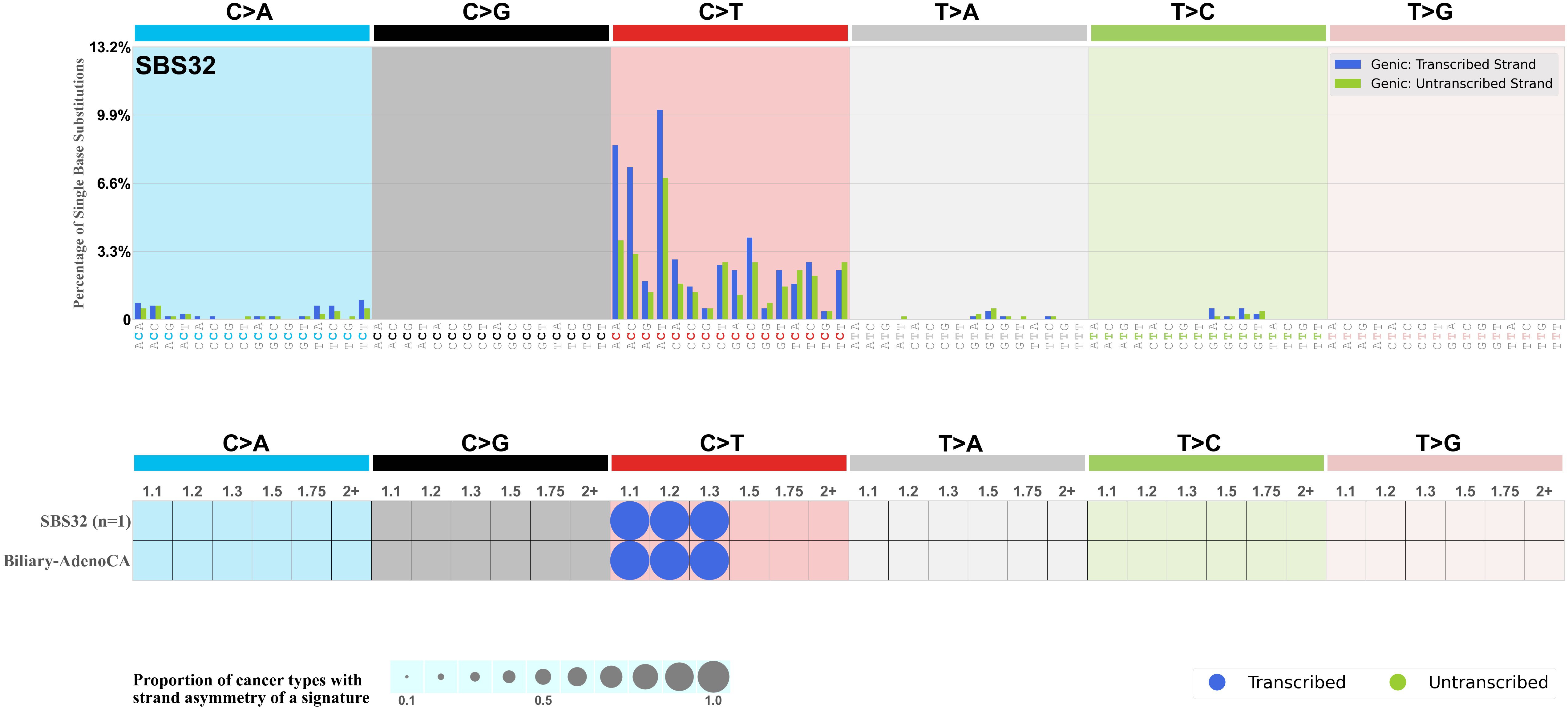 Each mutation attributed to the mutational signature is annotated as either on the transcribed strand, untranscribed strand, or non-transcribed strand.