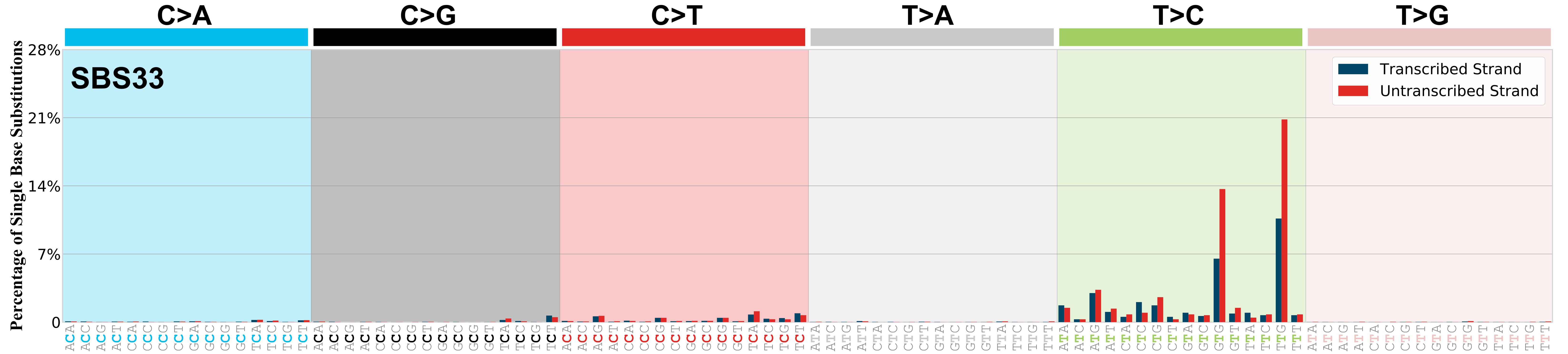 Each mutation attributed to the mutational signature is annotated as either on the transcribed strand, untranscribed strand, or non-transcribed strand.