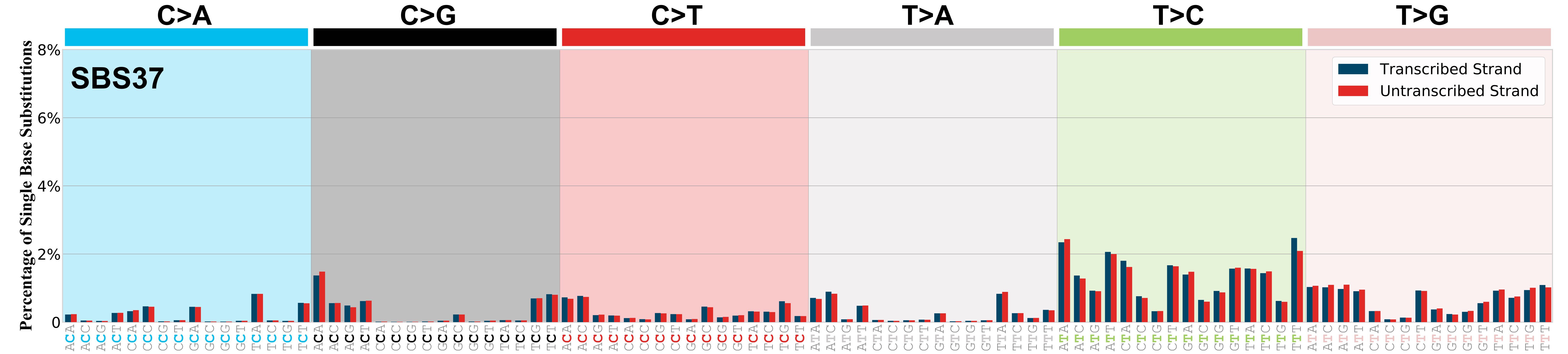 Mutational signatures exhibit asymmetric number of mutations due to either one of the DNA strands being preferentially repaired or one of the DNA strands having a higher propensity for being damaged. One common example of strand asymmetry is transcription-strand asymmetry which can be due to the activity of transcription-coupled nucleotide excision repair (TC-NER) or transcription-coupled damage amongst others.