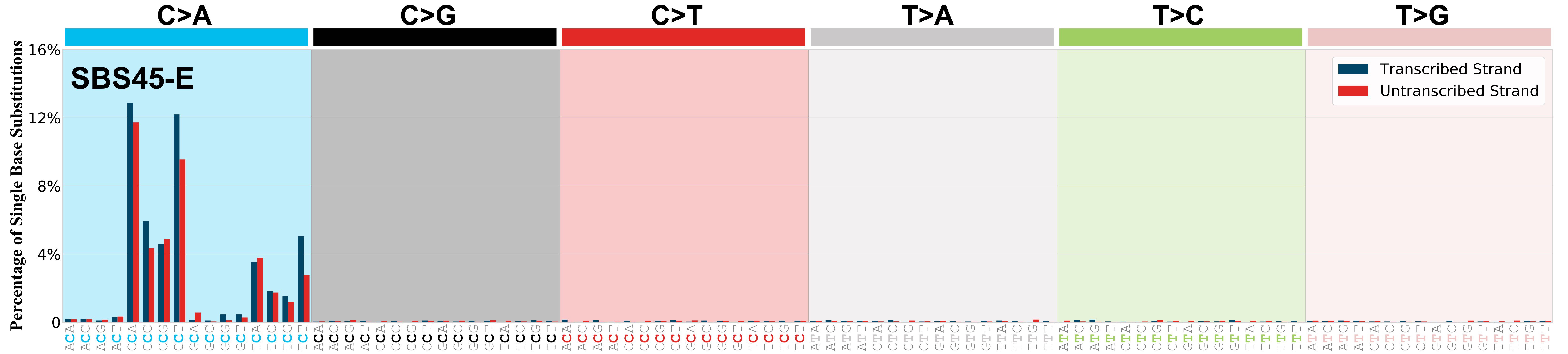 Mutational signatures exhibit asymmetric number of mutations due to either one of the DNA strands being preferentially repaired or one of the DNA strands having a higher propensity for being damaged. One common example of strand asymmetry is transcription-strand asymmetry which can be due to the activity of transcription-coupled nucleotide excision repair (TC-NER) or transcription-coupled damage amongst others.