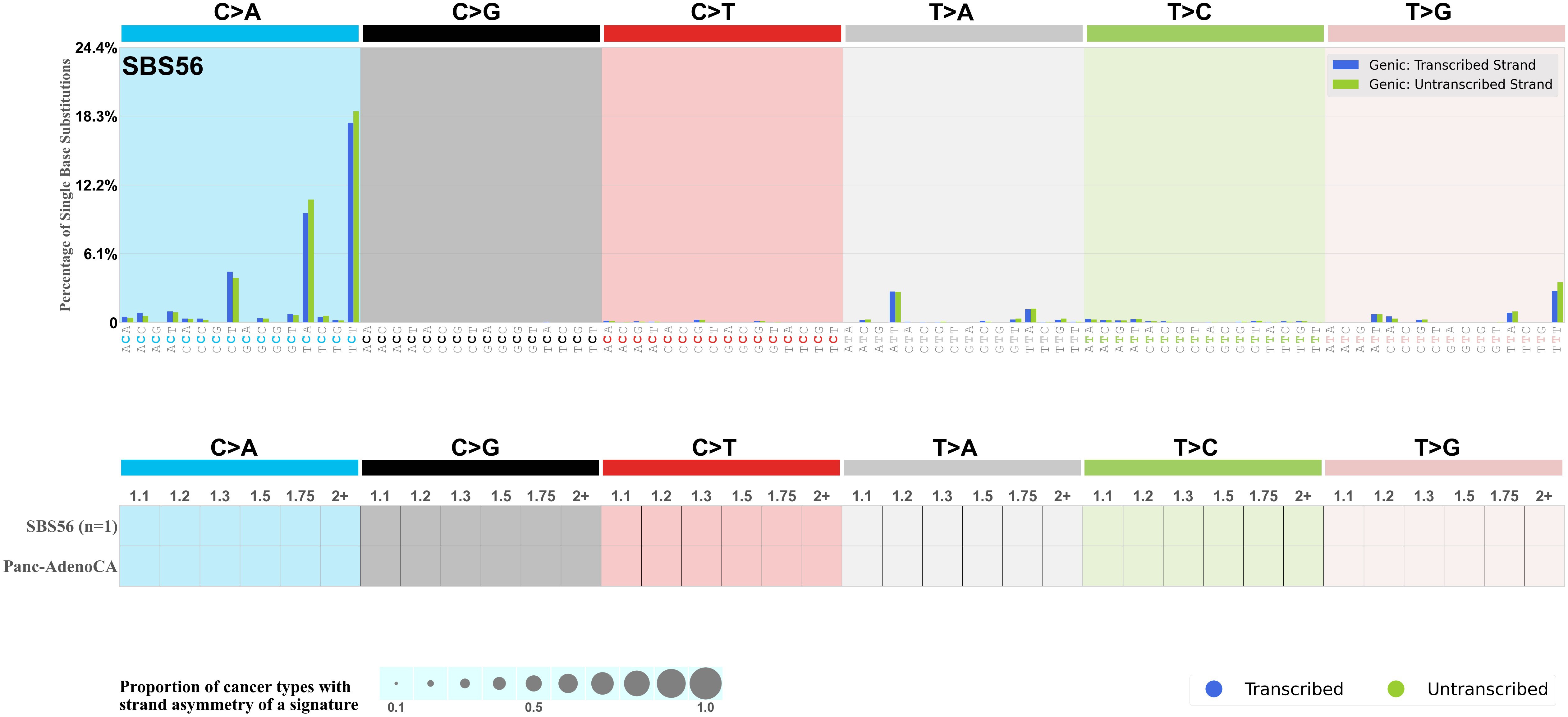 Each mutation attributed to the mutational signature is annotated as either on the transcribed strand, untranscribed strand, or non-transcribed strand.