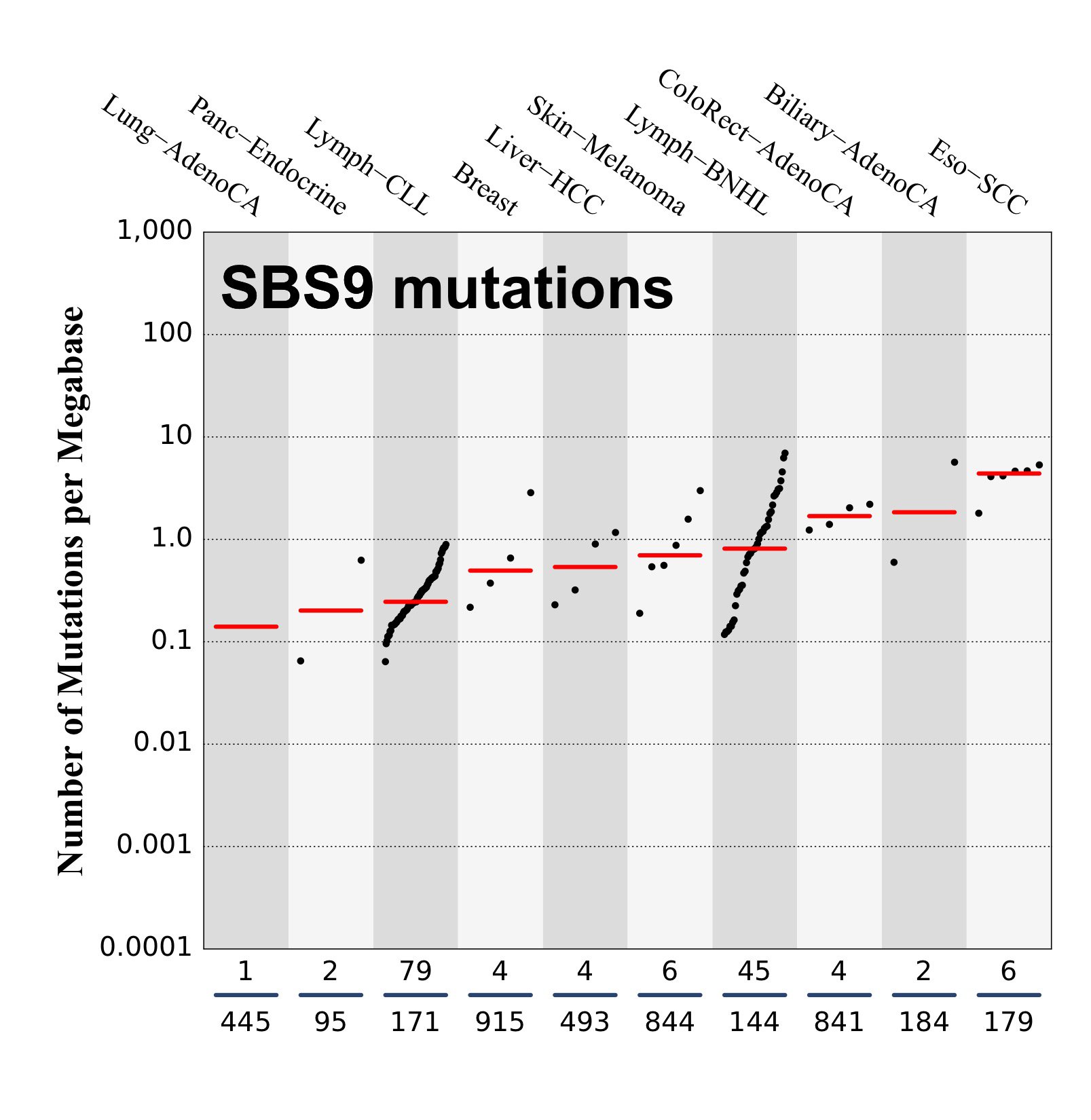 The pattern of SBS9 has been quite stable. The cosine similarity between the prior and current versions of signature SBS9 is 0.98.